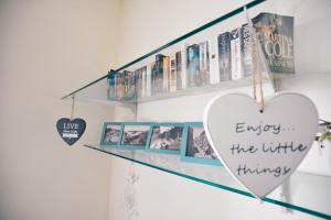 The one-bedroom apartment features a living room with a flat-screen TV, while the kitchen comes equipped with an oven, toaster, and electric kettle. The private bathroom has a walk-in shower and hairdryer. Guests enter through a private entrance where chocolates or cookies are provided for welcome refreshment.