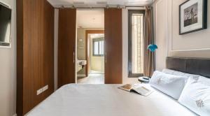 The apartment features four bathrooms equipped with bathtubs and bidets. The living area includes a seating space with a sofa bed and a fireplace for added comfort. Entertainment options include a flat-screen TV with streaming services, complemented by free Wi-Fi available throughout the unit.