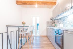 The apartment features a living room with a flat-screen TV that includes satellite channels and cable access. The fully equipped kitchen contains an oven and coffee machine, while the bathroom has a walk-in shower and hair dryer. Guests can also use ironing facilities provided in the room. A feather pillow complements the sleeping area.
