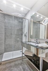 Each room features a desk, coffee machine, minibar, safety deposit box, flat-screen TV with cable channels, and a seating area that includes a sofa bed. Some rooms have terraces or balconies overlooking the city. Guests can also find amenities such as an iron with ironing board and complimentary bottled water. Bathrooms are equipped with showers and hairdryers.