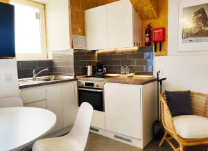 The residence includes one bedroom with hypoallergenic pillows and beds over two metres long. It has air conditioning, heating, acoustic insulation, tile or marble flooring, and an air purifier. The fully equipped kitchen contains an oven, microwave, toaster, tea and coffee maker. The living area features a sofa and flat-screen TV with streaming services. The bathroom is fitted with both a shower and hot tub.